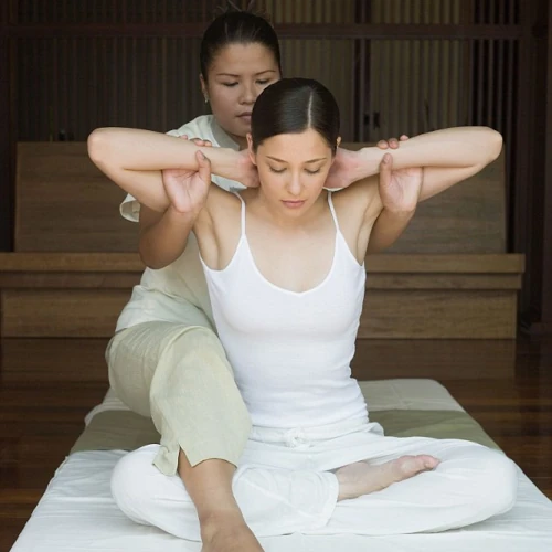 Unlike Western (Swedish or Deep Tissue) massage, which involves long strokes and kneading, traditional Thai massage is a type of therapeutic bodywork that combines rhythmic compression with short strokes, assisted yoga-like stretches, and joint mobilization. The aim is to stimulate blood circulation throughout the body.