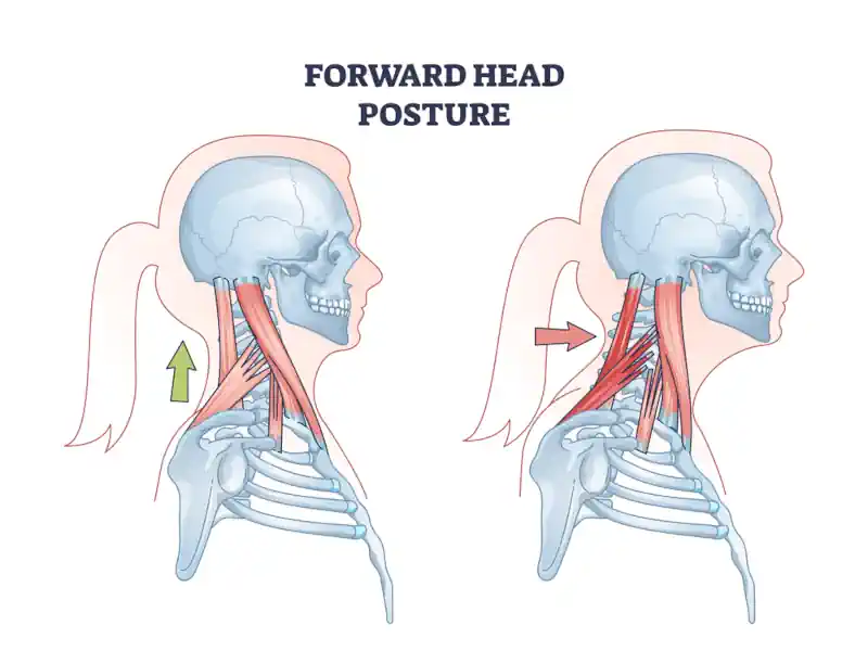 With FHP, some muscles shorten and overactivate (they clench), while others stretch out and weaken. The key is releasing those clenches so your head returns to neutral without effort.