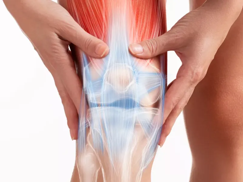 Most of the joints in the body provide a wide range of motion because they have space between adjacent bones that are filled with lubricating fluid. These are the joints of the knees, shoulders, hips, elbows, wrists, fingers, and upper neck, where flexibility is critical. The bones in such a non-rigid connection are supported by ligaments and tendons on the outside of the joint.