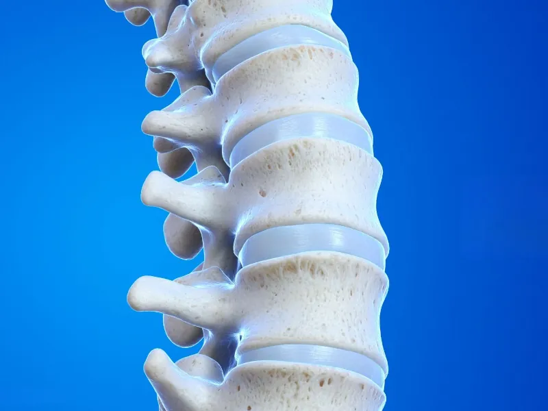 In fact, each vertebra is connected to the neighboring one by three joints: the main structure, called the vertebral disc, consists of cartilaginous tissue and plays the role of a shock absorber, and the other two, called facet joints, are filled with lubricant and work as hinges. This intricate design keeps the vertebral column stable and strong while allowing it to twist, or bend to the front, back, or side.